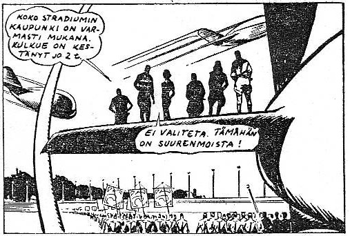 Tähänkö seikkailu päättyy? Eipä tietenkään. Roistojen alus maassa valmistuu. Heillä on varmaankin ollut apunaan King Kongista tuttu tehorakentajakääpiö Gogra, koskapa alus valmistuu kolmessa päivässä siitä, kun Morel palkataan alusta rakentamaan. Eipä aikaakaan kun roistoalus vilahtaa Radiaanien televisiossa.