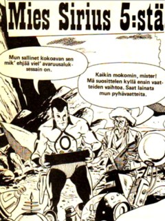 | Hopeanuoli - Mies Sirius 5:stä Alunperin saksalainen tuote Hopeanuoli (Silberpfeil) oli aikansa kova hitti. Värillisen intiaanilehden parasta antia nykypäivän lukijalle ovat kuitenkin mustavalkoiset täytepalat, jotka toivat hyvinkin mieleen Weird Western Tales (suomeksi Hurja Länsi ja Tomahawk lehdissä) tarinat, ollen kuitenkin astetta sopivampia lapsille. Aivan käsittämätöntä kalkkunaa täytepalojen seassa edusti Mies Sirius 5:stä, jossa Wander, kauppamaukustaja Sirius 5:stä, on pudonnut jonnekin Teksasin ja Meksikon rajalle. Hän pistää rajaseudun roistoja ojennukseen samalla kun yrittää saada avararuusalustaan taas lähtökuntoon. Sarjaa tekivät alunperin sellaiset sarjakuvan suurnimet, kuin Jim Aparo ja Denny O'Neil. Seitsemän jakson jälkeen ruoriin tarttui paljon suttuisampi tuhertaja Fred Himes.