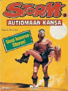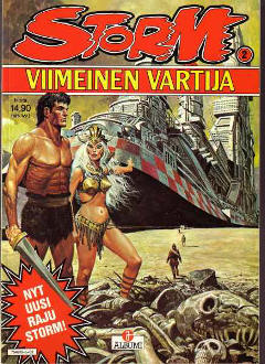 on Martin Lodewijkin ja Don Lawrencen luoma scifi- ja fantasiamaailman seikkailija, jonka tarinat alunperin on suunnattu Alankomaiden markkinoille. Storm on amerikkalainen astronautti, joka tutkimusmatkaltaan Jupiteriin palatessaan huomaa tuhansien vuosien kuluneen Maapallolta lähtönsä jälkeen. Maailma ja sivilisaatiot ovat taantuneet takaisin barbarismiin. Kumppanikseen saamansa Roodhaarin, Punatukan kanssa Storm joutuu uudessa tuntetemattomassa maailmassa gladiaattoritaisteluihin ja ihmeen usein myös alkuperäiskansojen vangiksi. Sarja seuraa Stormin toivotonta etsintää, miten päästä takaisin "kotiin". Yhtymäkohtia sarjasta langoista löytyy niin Apinoiden planeettaan, kuin Conaniinkin. Toisaalta kuvitustyyli on upeaa ja välillä armottoman irvokasta, aivan kuin Bilalin siveltimestä. Suomessa seikkailuja ilmestyi kolmen albumin verran. Alkukielellä, hollanniksi näitä on ainakin seitsemän. |